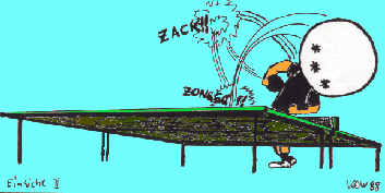 Aufschlag schwebt luftig heran,tropft auf meinen Schläger, dreht